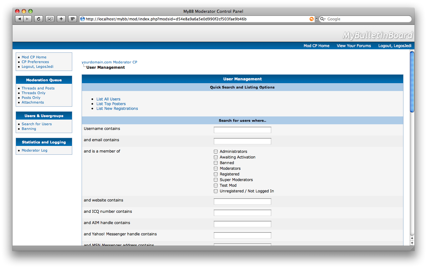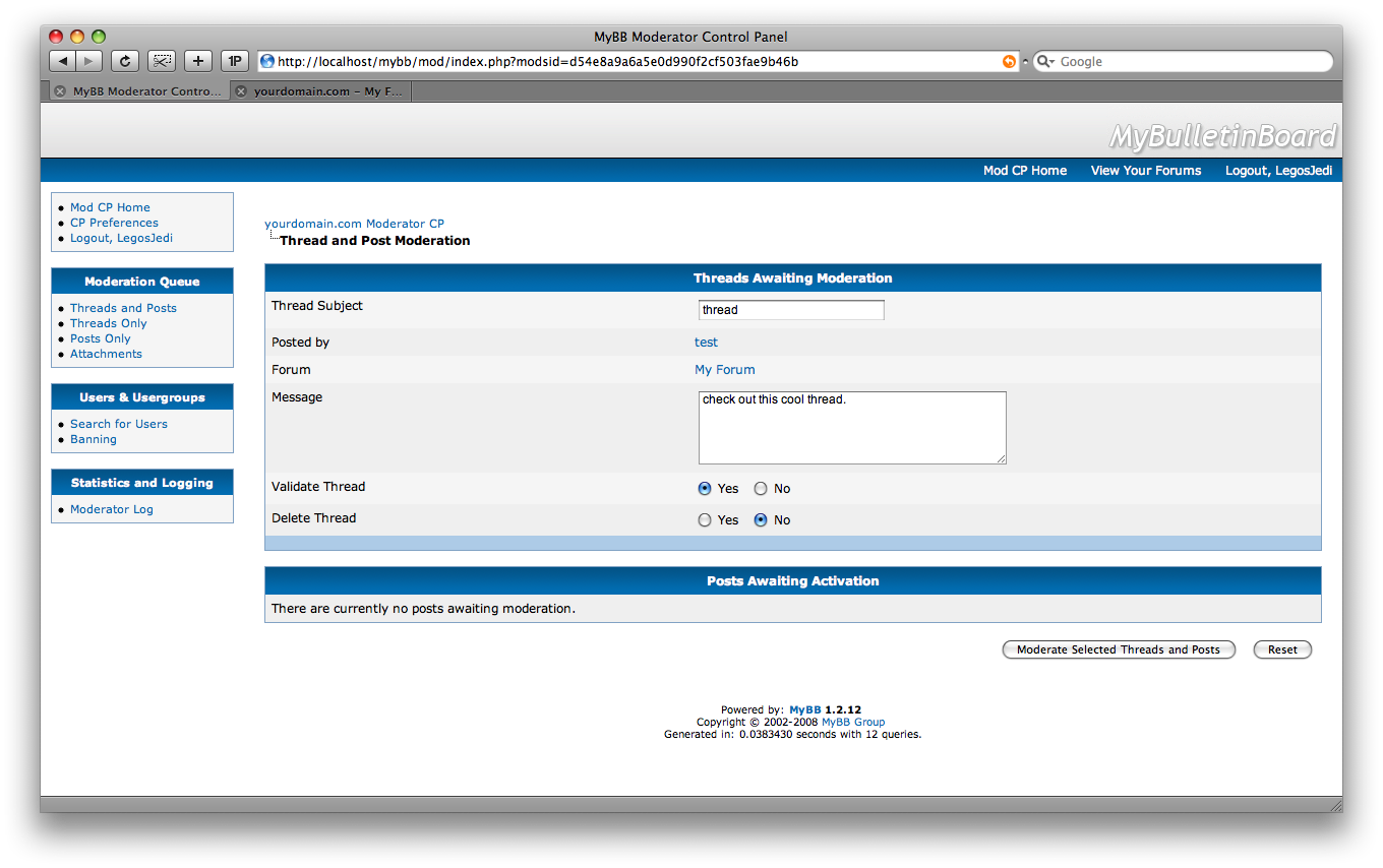 This plugin adds a Moderator Control Panel to your MyBB board, allowing your mods to have a way to moderate posts, threads, and attachments, manage announcements, and ban users.Autor: LegosJedi
