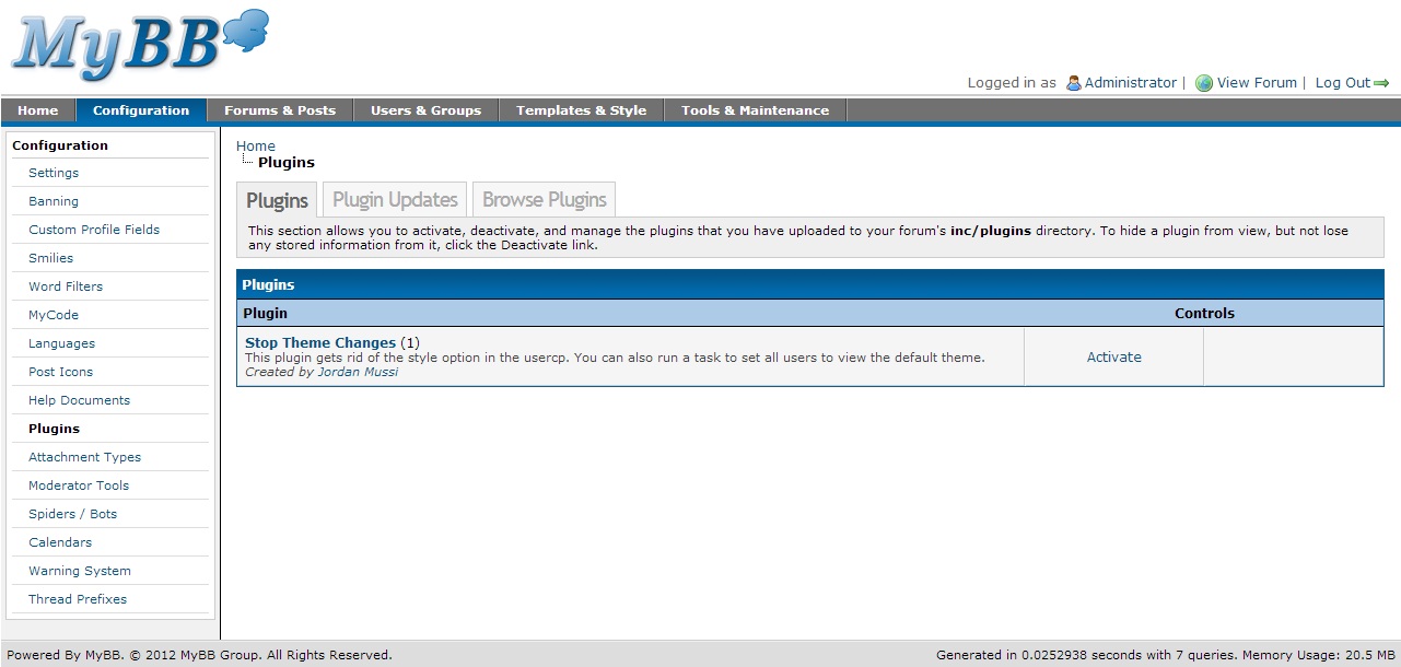 Stop Theme Changes 1.1 von JordanMussi für MyBB 1.6.x