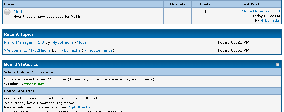 Recent Topics on Index page 1.0.2 von vbgamer45 für MyBB 1.6.x