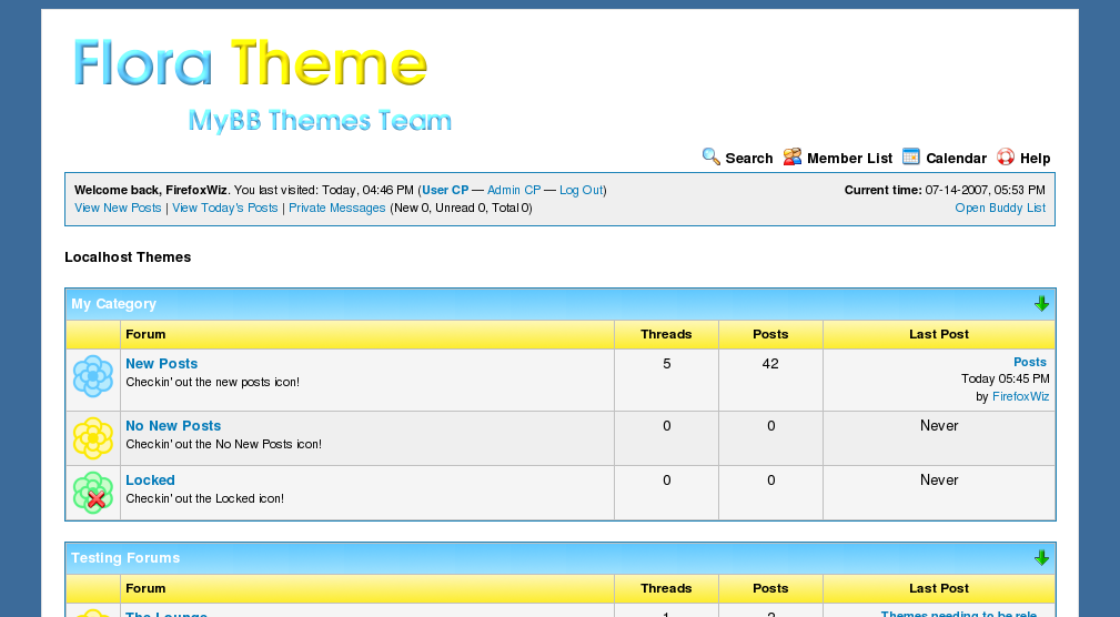 Blue and silver with flowers. Based on a Windows Live Spaces theme.