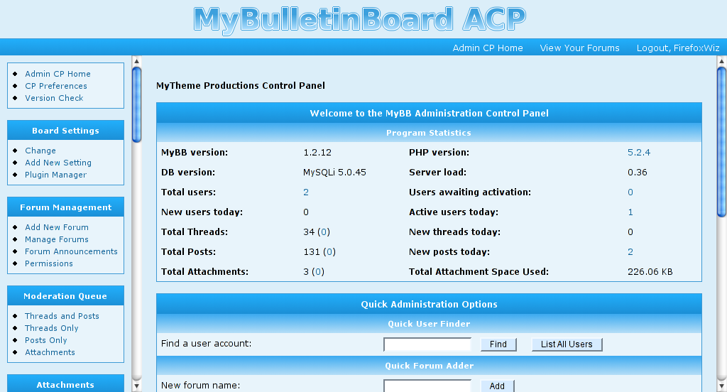 BabyBlue Pro ACP v1.0 von FirefoxWiz für MyBB 1.2.x