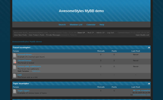The Neon Bloo theme, from the Neon Collection, successfully converted to MyBB with rights. Previews are below.