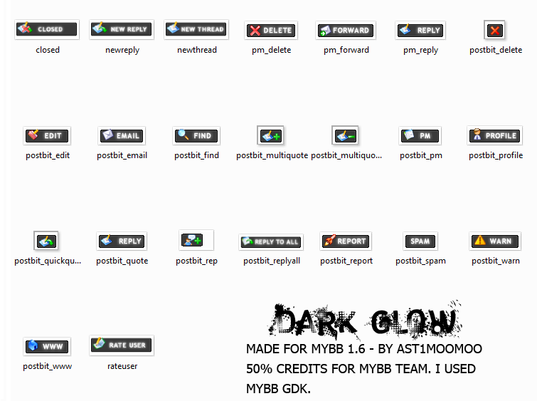 Dark glow buttons for mybb 1.6. It's transparent, can be used for dark and light themes.