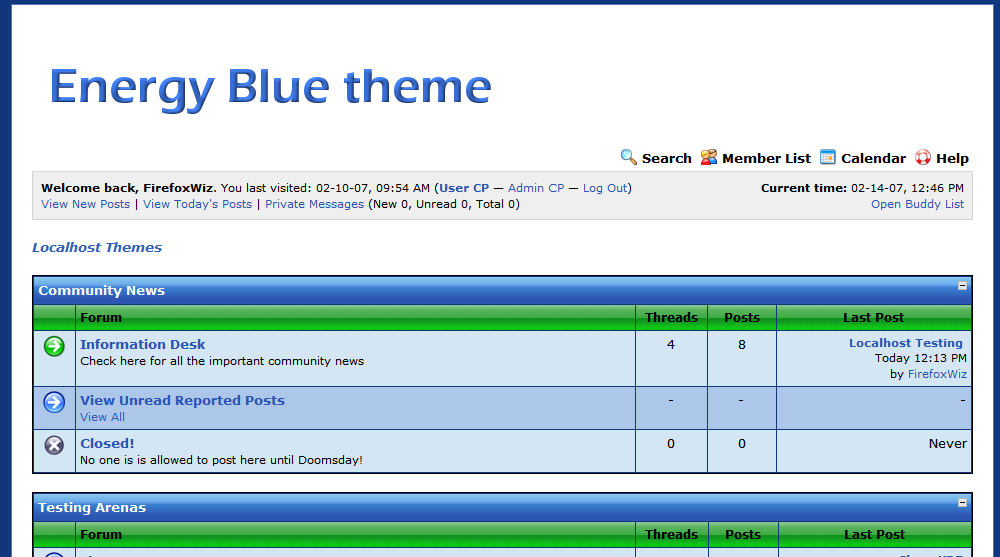 Now you can view the theme by going to your User CP > Edit Options > Board Style > Energy Blue!