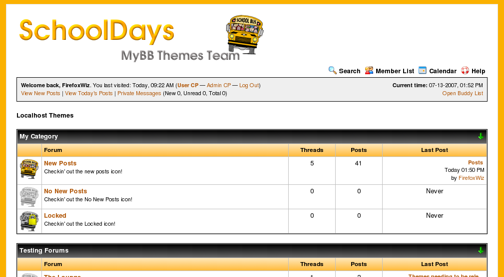 SchoolDays is a custom designed black and orange theme with school bus icons. Based on a School Forum.