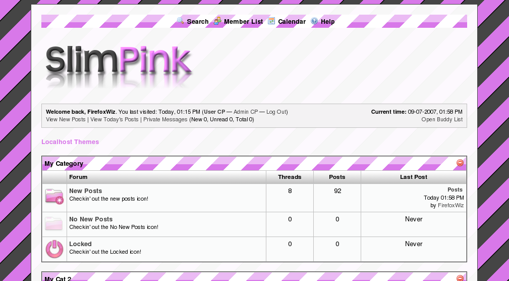 SlimPink is a pink, white, and blackish type theme with stripes.