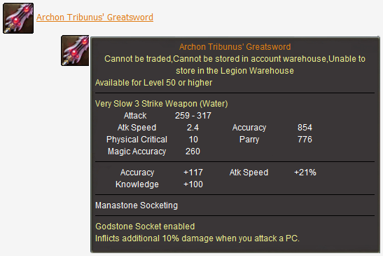 [item]Archon Tribunus' Greatsword[/item] will show the link to AionArmory and tooltip of the named item