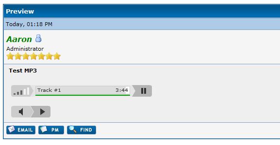 This BBCode allows users to add mp3's into their threads. This BBCode supports multiple players on the same page.Autor: Aaron