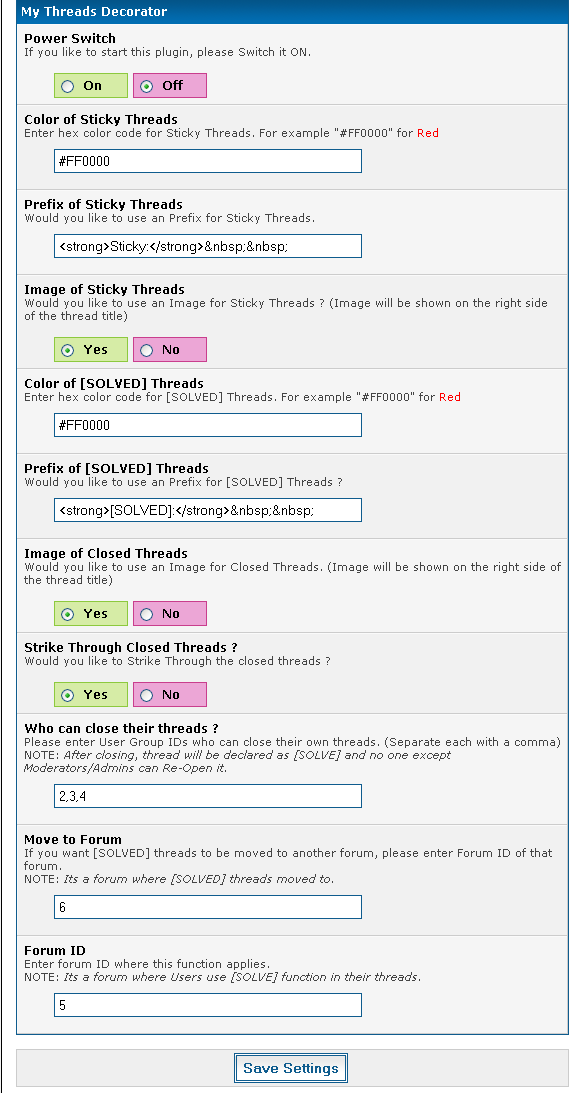 Manage your Closed & Sticky threads with this plugin. Change Color, add an Image, add an Prefix and Strike through Closed & Sticky threads. Closed threads will be move to another selected forum automatically.