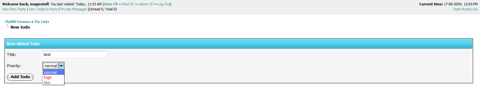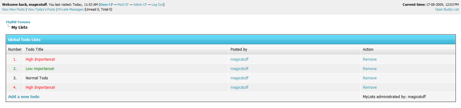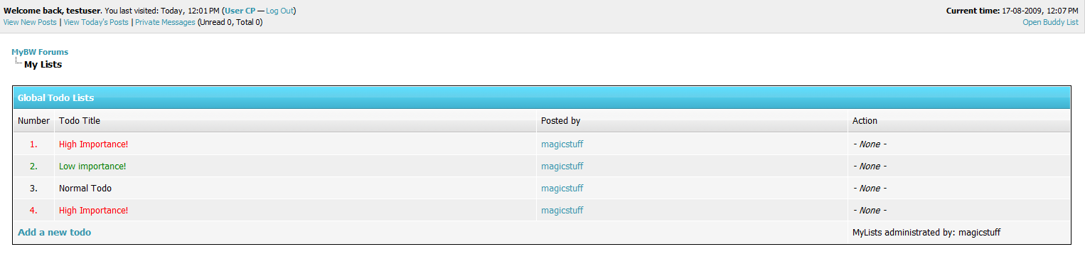 My Lists creates a global Todo list page that logged in users can access through their usercp.Autor: magicstuff