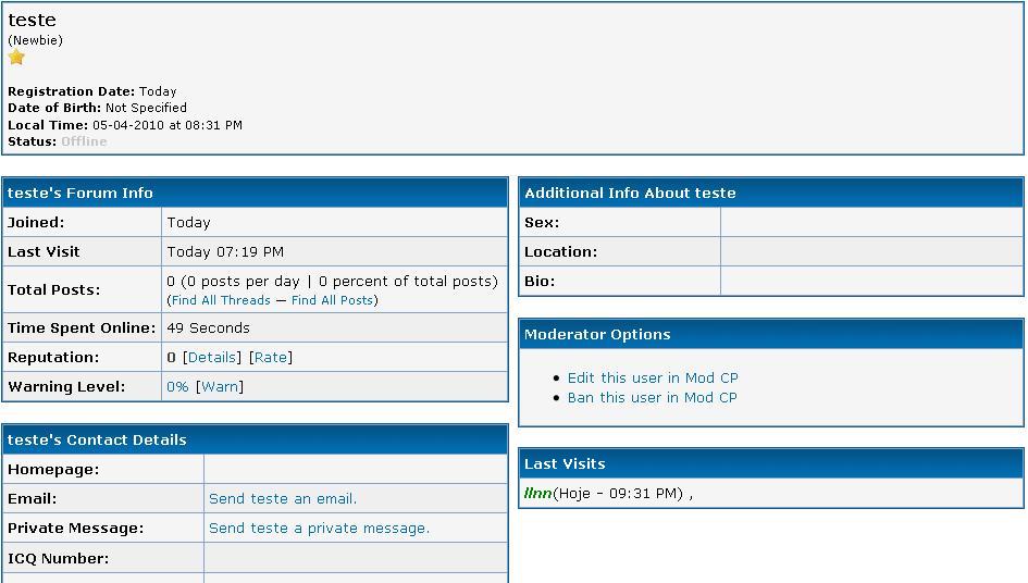 This Puglin Add a Box in Users Profiles with Last 10 Users Have Visit It, Show The Date And Time When User Visit.Autor: llnn