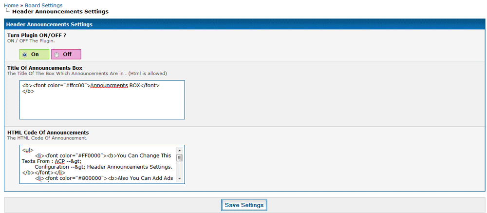 Adds Your Announcements (Like: Warnings , Messages and ...) In header.