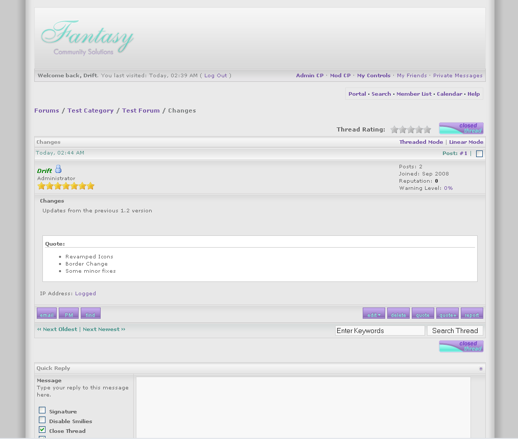 Notes: This theme updated to make it work with mybb 1.4, some minor template edits were made. the look has also changed