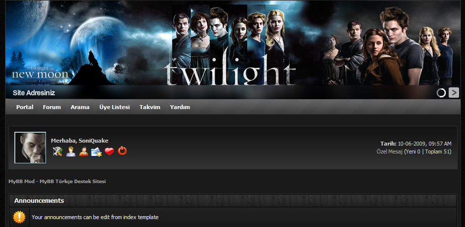 Description: Dark theme for Twilight fans. Theme header contains flash banner feature. So, you can change the banner for multi style...
