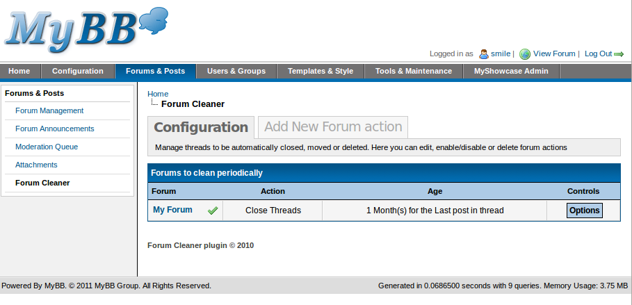 Forum Cleaner 3.0.0 von Omar G. für MyBB 1.8.x