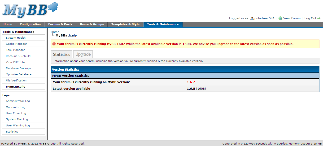 Firstly navigate to the MyBBatically module. This can be found in ACP > Tools & Maintenance > MyBBatically