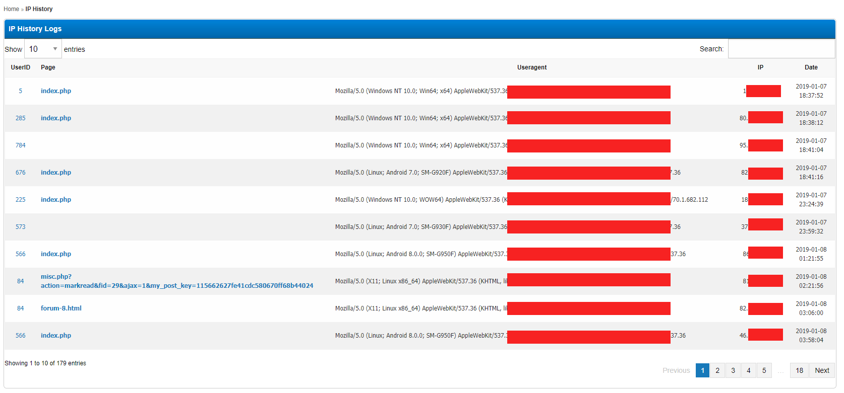User IP History Logs 1.4.3 von JeremyCrookshank für MyBB 1.8.x