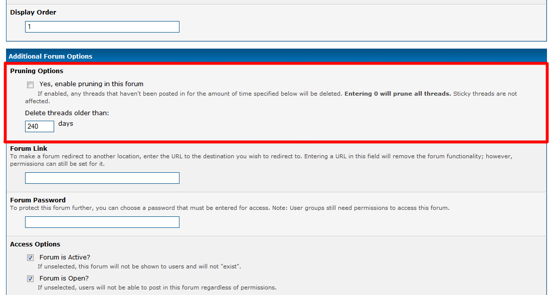 Allows you to prune old threads from specific forums.