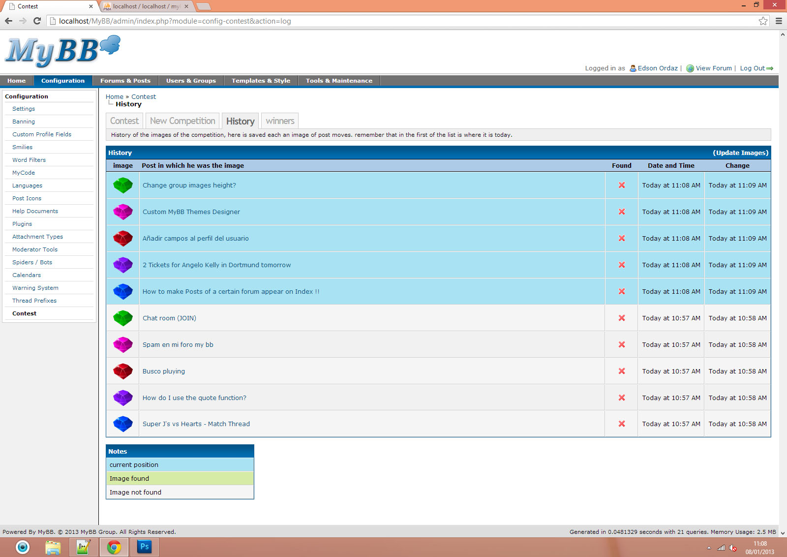 In the background in the administration panel tells you that the images have been post and the current position of each on the winners tab tells you which users have found that post pictures and found pictures!