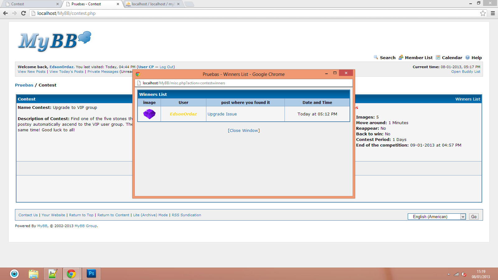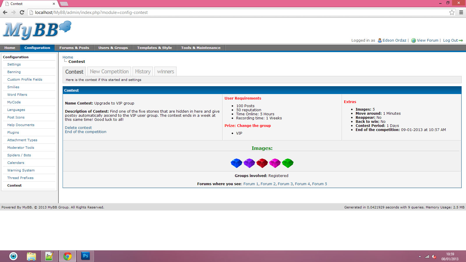 competition can not be two simultaneously active and can finalize cocurso or delete it anytime from the admin panel.