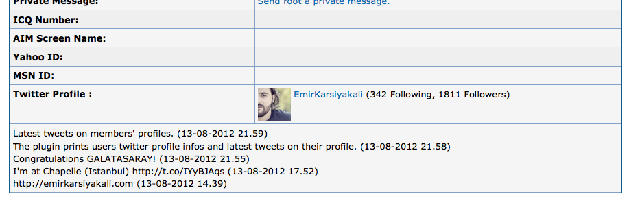 The plugin prints users twitter profile infos and latest tweets on their profile.