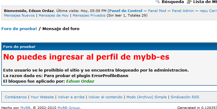 Profile Banned 1.0 von Edson Ordaz für MyBB 1.6.x
