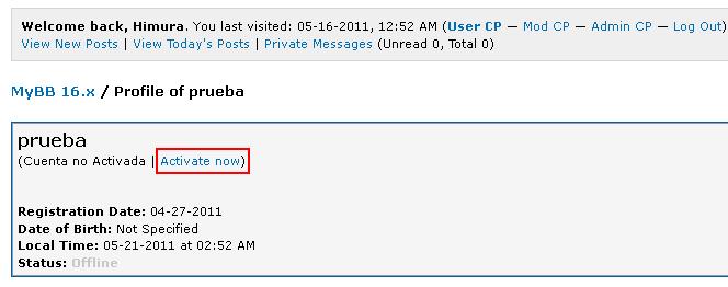 Resend activation code from User profile 3 von cgshelf für MyBB 1.6.x