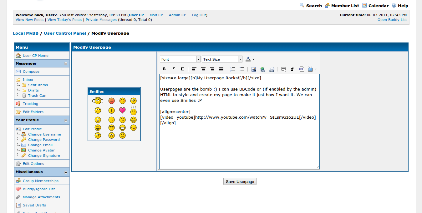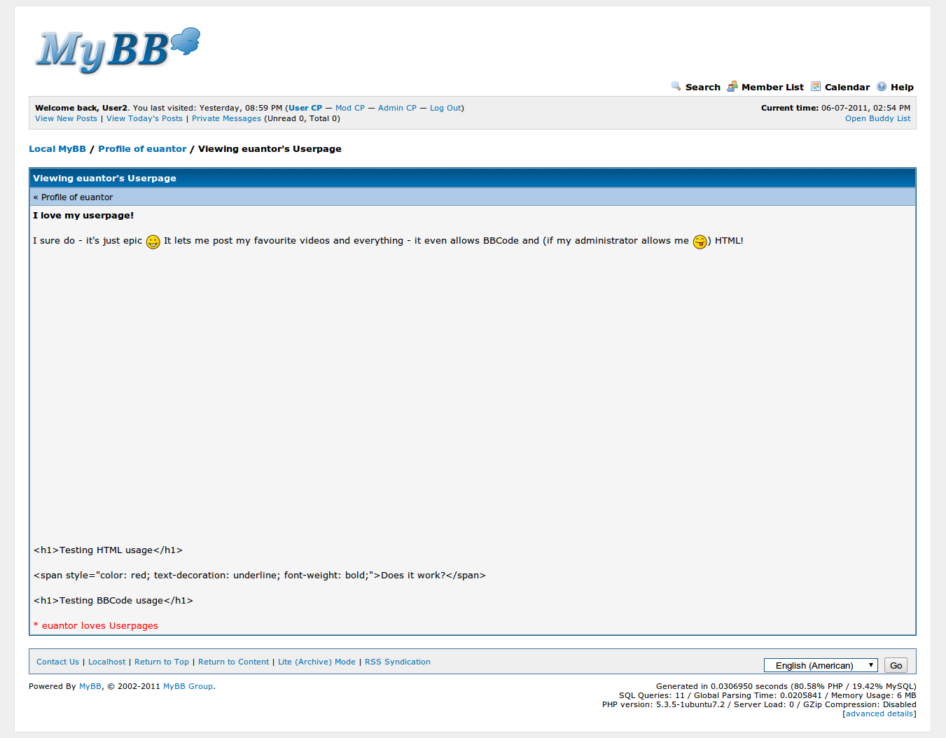 Userpages for MyBB