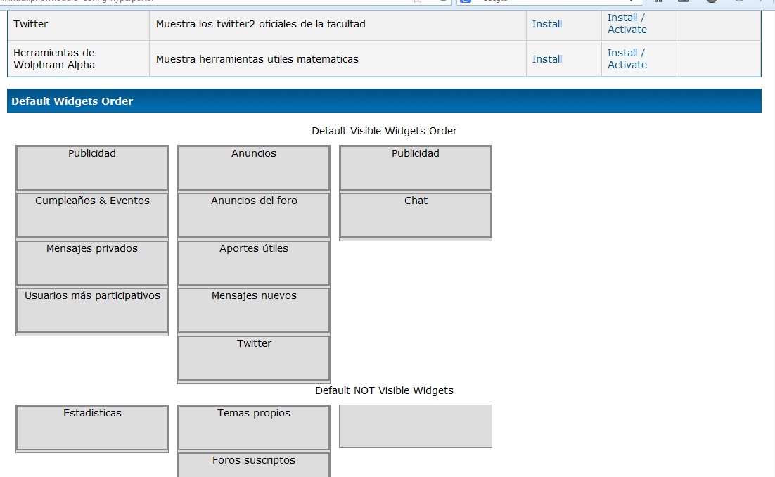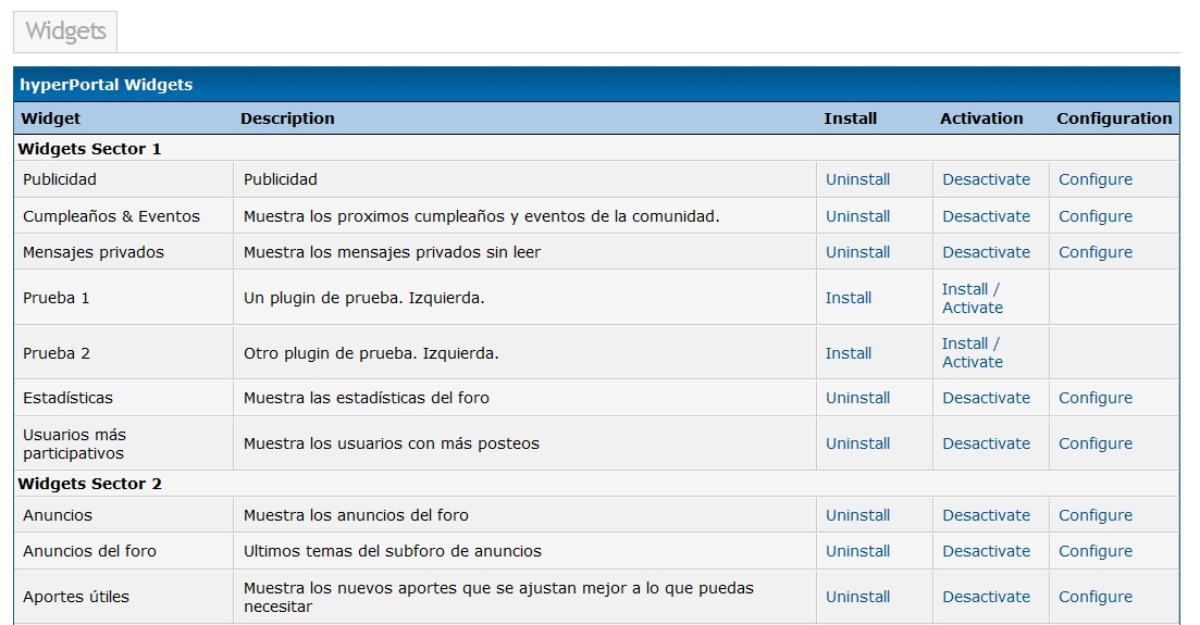 * Install & Activate widgets from Configuracion -> hyperPortal Widgets