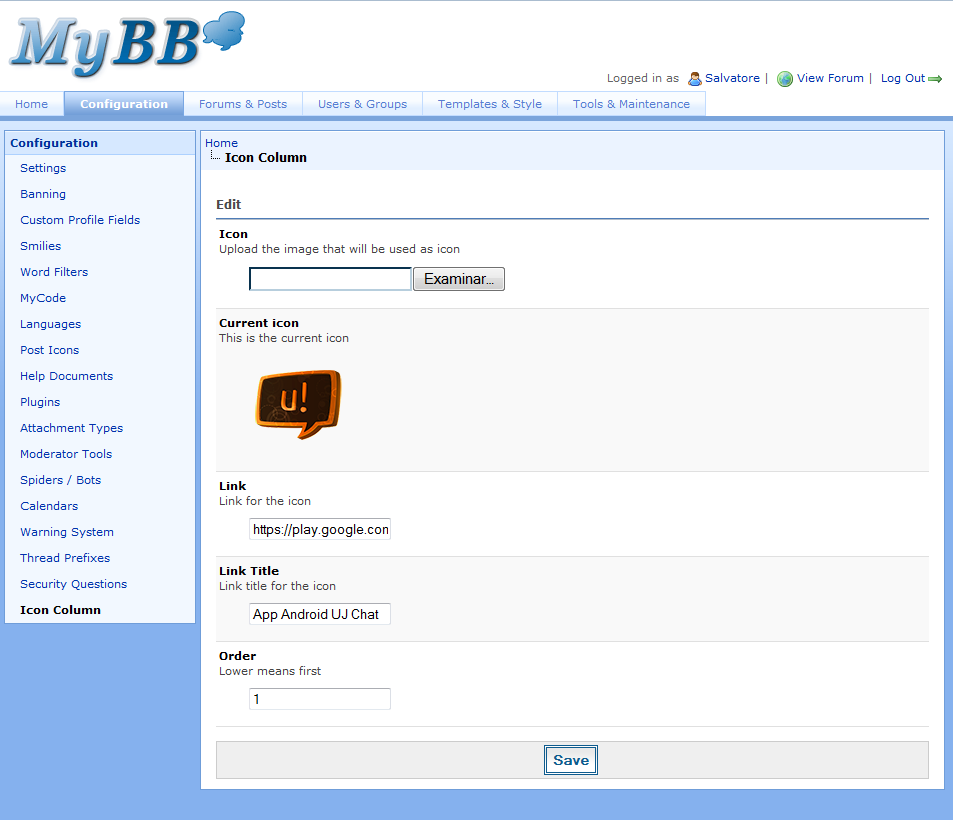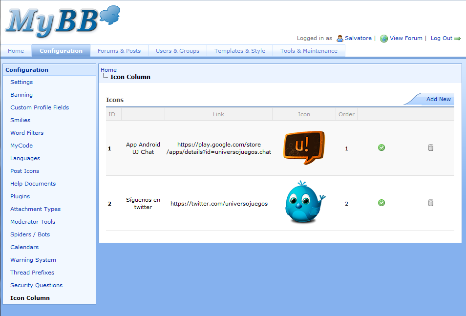 - Go to "ACP->Configuration->Icon Column" and add some icons.