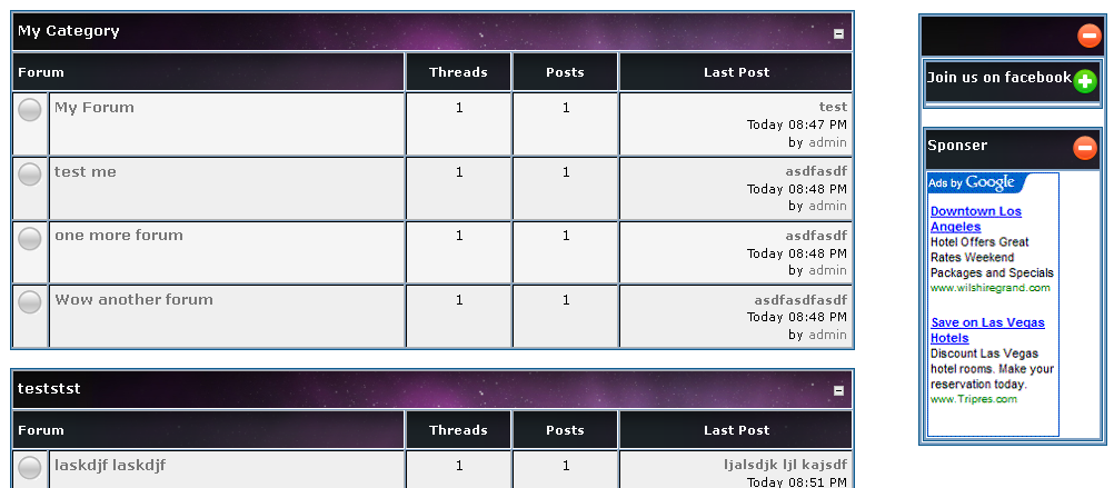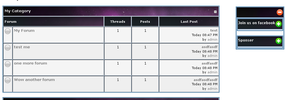 1. Sidebarmybb V 1.0 has the ability to add a side bar in your index page.