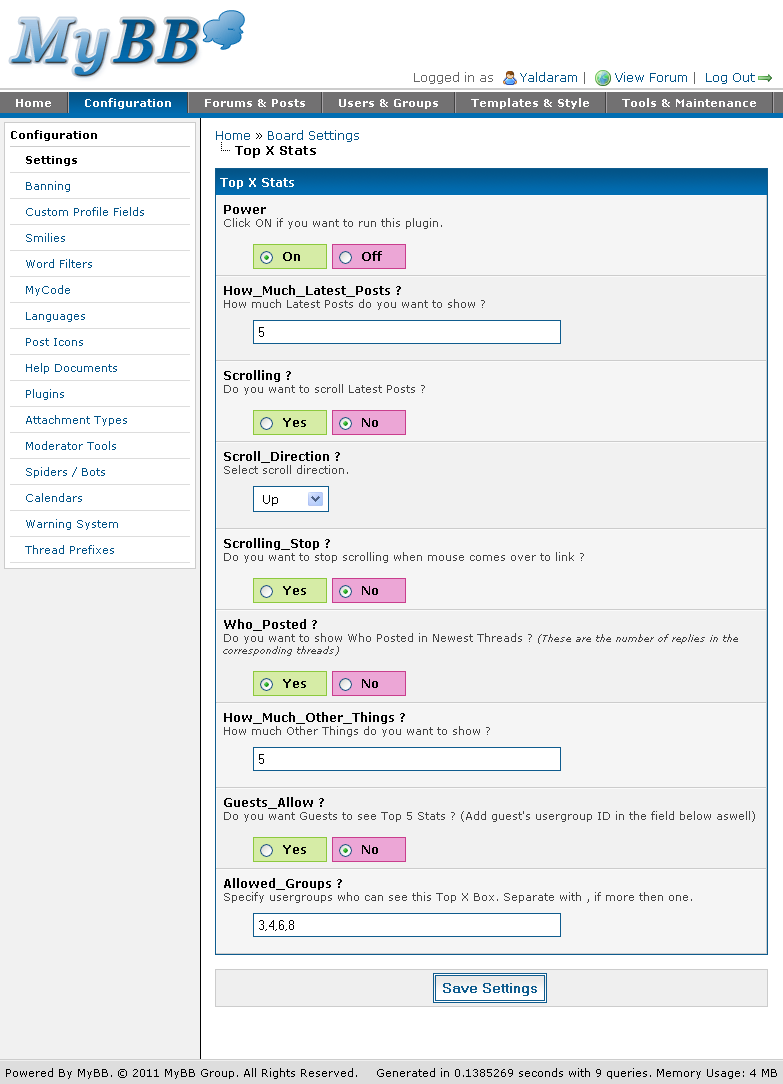 Top X Stats 0.1 von Yaldaram für MyBB 1.6.x