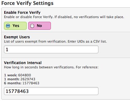 Forces users to verify their user information at a set time interval.