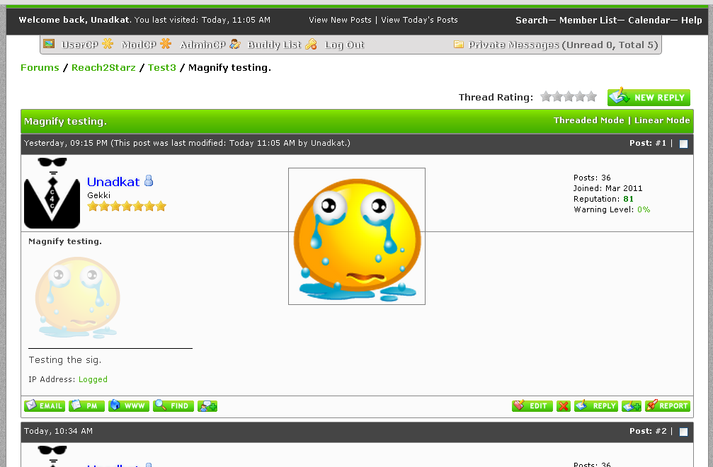 Plugin description: Gives animated magnify (zoom) jquery effect to images on thread.