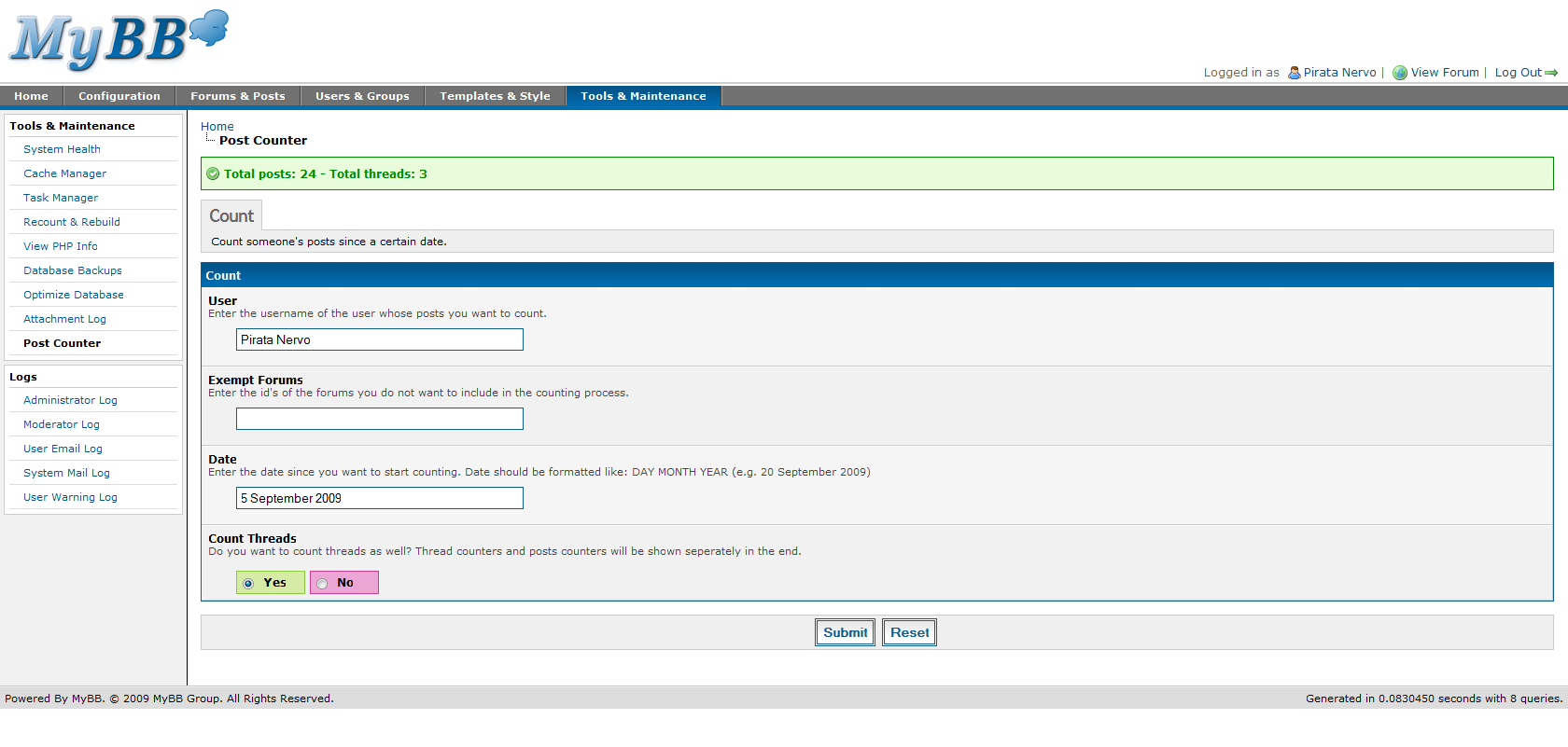 Post Counter 1.2 von Diogo Parrinha für MyBB 1.8.x