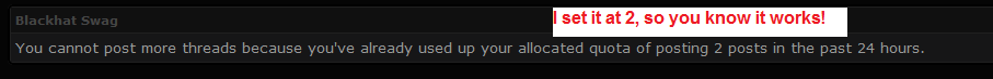 Allows admins to limit the number of threads that users in a usergroup can post per day.