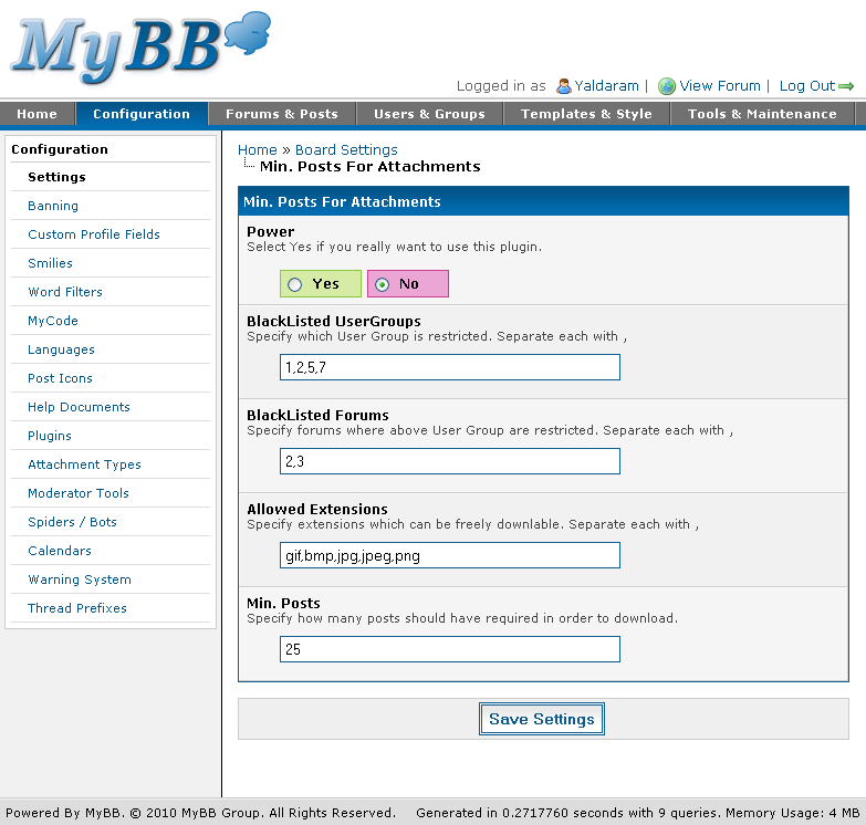 Min. Posts for Attachments 0.1 von Yaldaram für MyBB 1.6.x