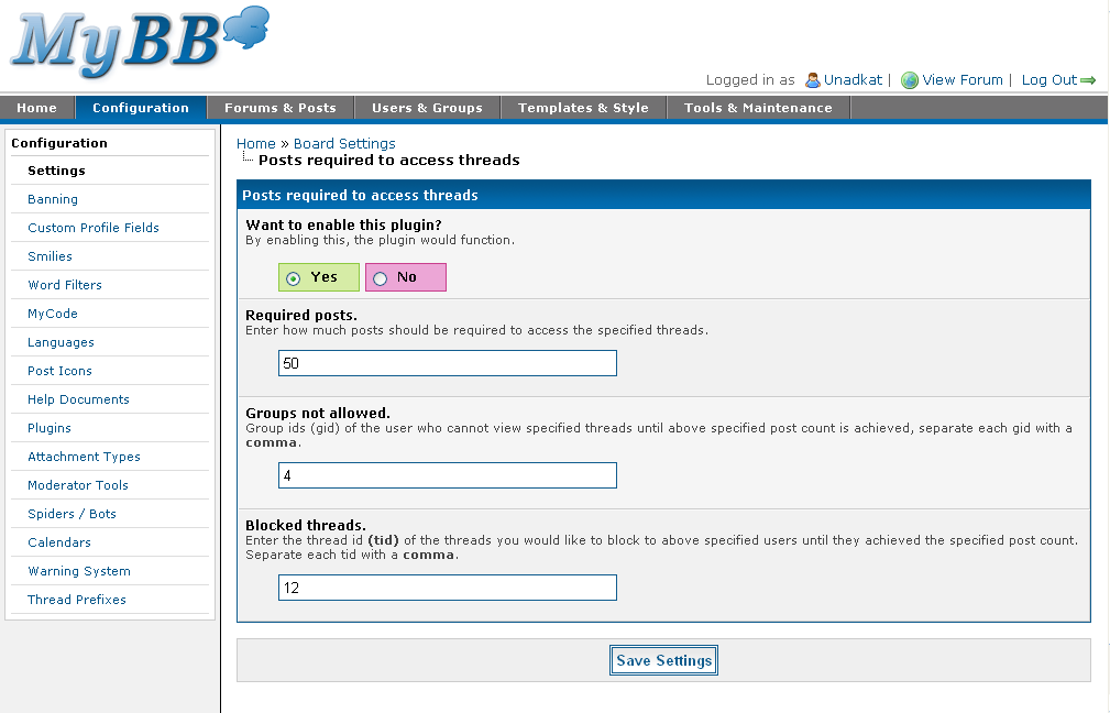 Posts required to access threads 1.0 von crazy4cs für MyBB 1.6.x