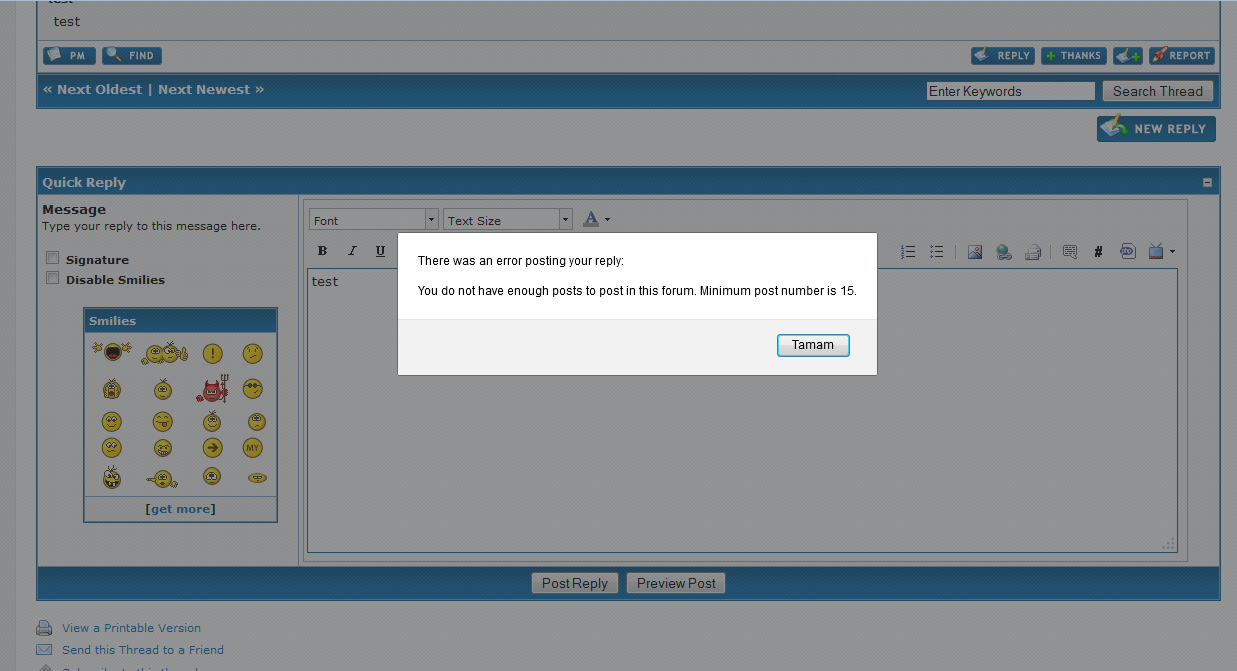Users require minimum post number to be able to post in certain forums.