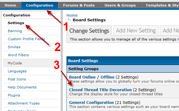 Closed Thread Title Decoration and Prefix 1.0 von Asterix für MyBB 1.4.x