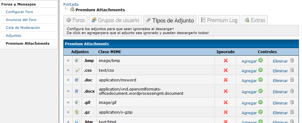 y por ultimo se configura el tipo de adjunto a ignorar, este tipo de adjunto podra descargarse para todos los usuarios!!