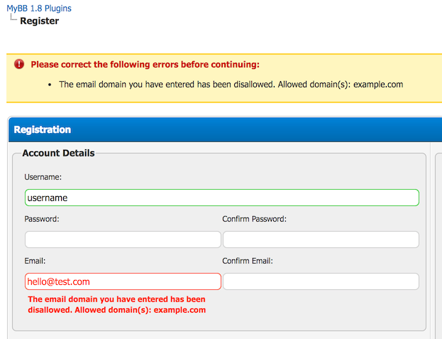 Whitelisted Email Domains 1.0 von Rakes für MyBB 1.8.x