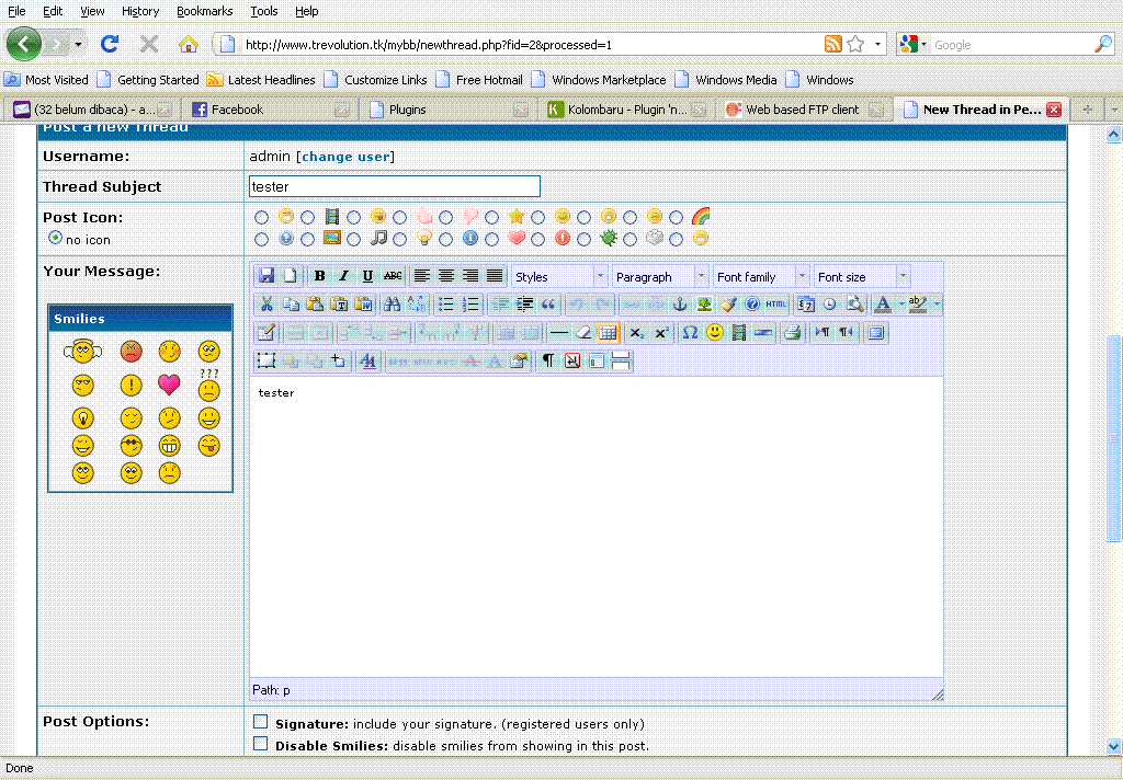 Sure to First Go to the FTP File Transfer after already Install & Active TinyMCE, Materials Both Choose a forum to enable editors Pluginsnya In the Misc Settings and tick allow HTML Post