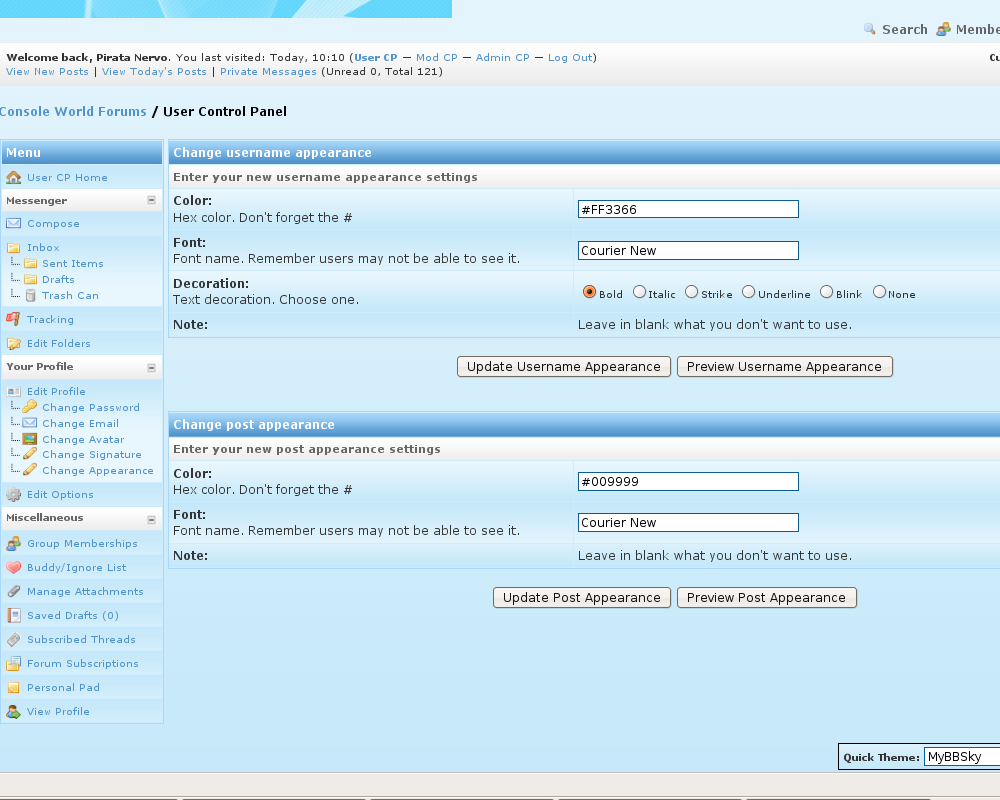 User Appearance 0.3 von Diogo Parrinha für MyBB 1.4.x