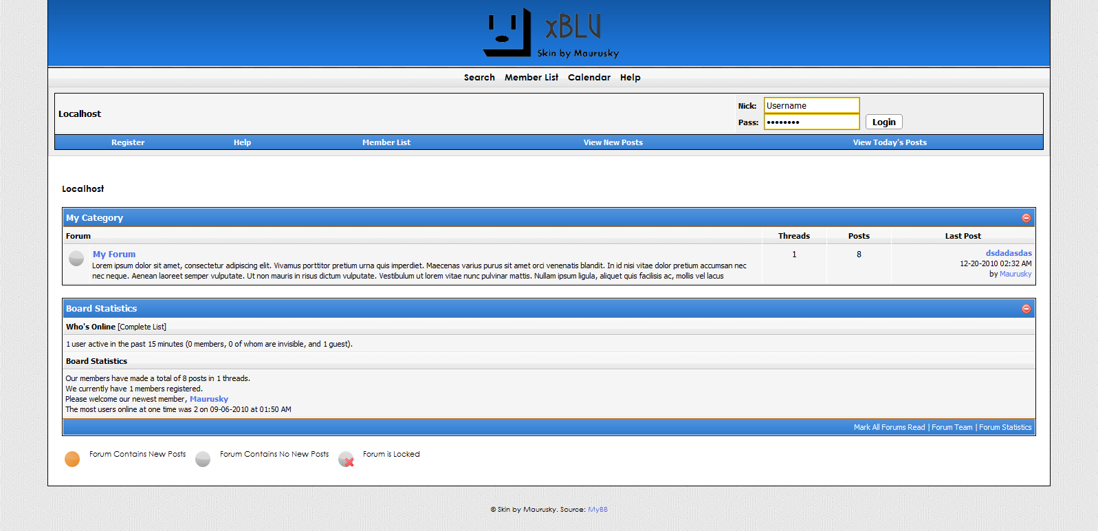 EvoBleu is a white and dark blue 1.6 theme, with a floral background and custom buttons.