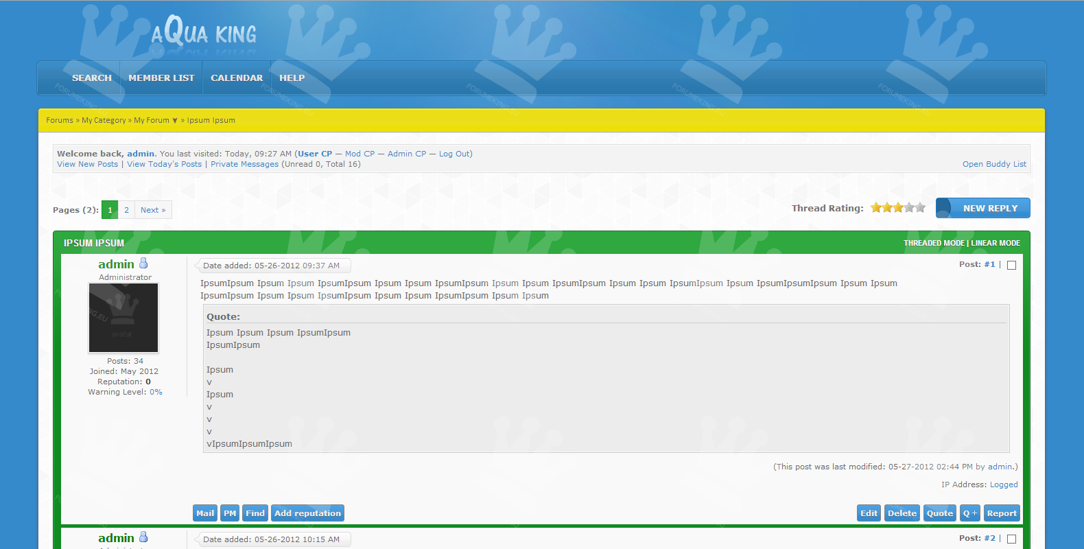 If you found a bug in the style please report in this topic.(http://forumeking.eu/aQua-Theme.html)