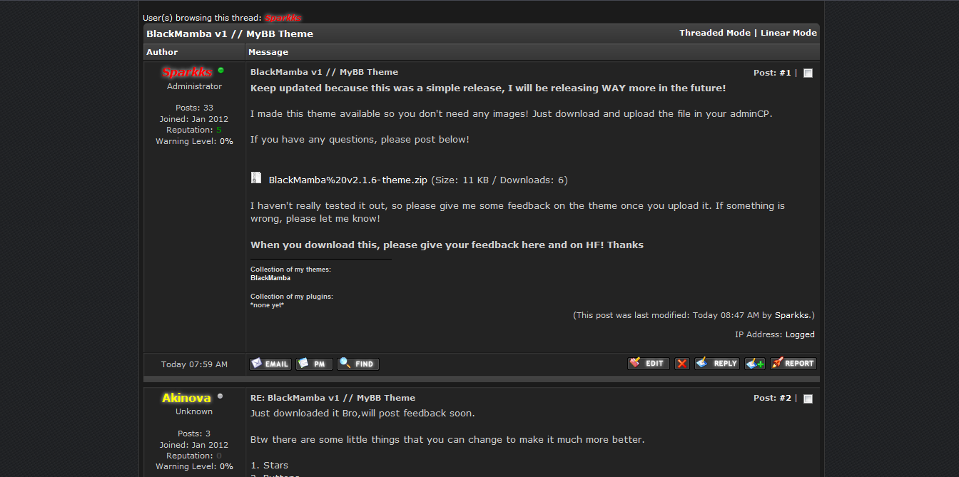 [img]http://mods.mybb.com/uploads/previews/55610-1327066509-forum_display.thumb.PNG[/img][img]http://mods.mybb.com/uploads/previews/55610-1327066520-home.thumb.png[/img][img]http://mods.mybb.com/uploads/previews/55610-1327066530-post_display.thumb.png[/img][img]http://mods.mybb.com/uploads/previews/55610-1327066540-thread_display.thumb.PNG[/img]
