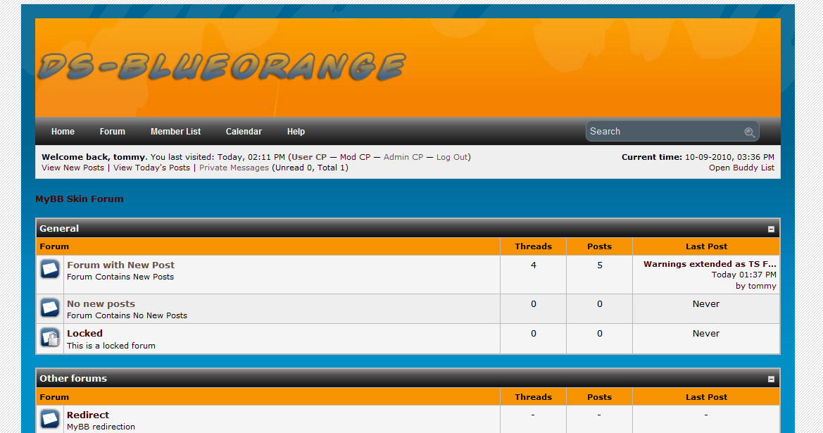 DS BlueOrange is a simple, but nice colorful skin for MyBB. I also included the .psd file for the logo in the package, so you can change it to fit your site.Autor: dtommy79