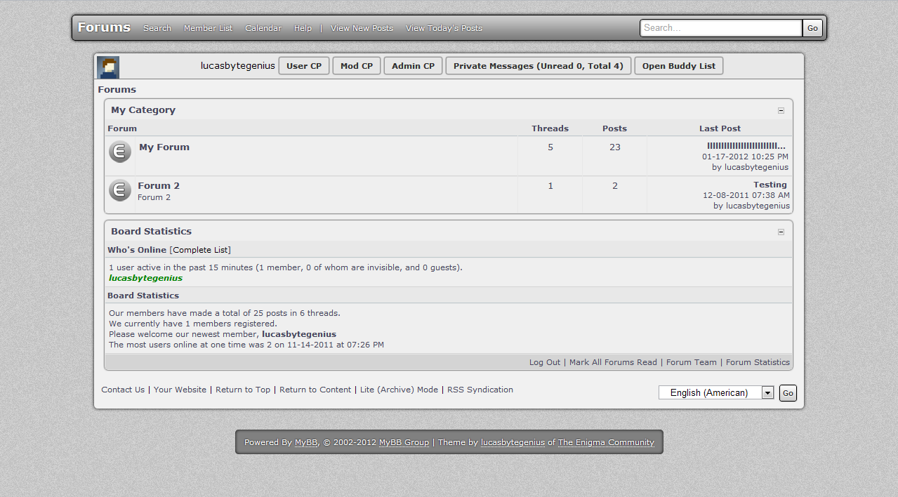 EnigmaSilver is a sleek, compact theme for MyBB. It uses only one image as part of the theme, everything else is either CSS or the default MyBB icons.Autor: lucasbytegenius