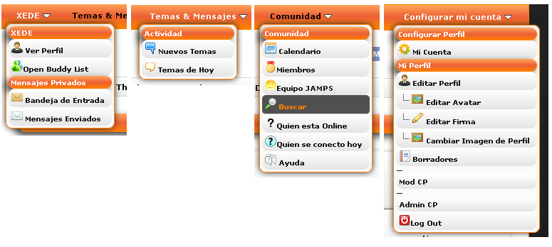 El tema en las imágenes esta en mi idioma el cual es español, lo cual se cambia a ingles o el idioma que cada persona use MyBB desde el ACP, el theme en si esta realizado en un 100% CSS, por ende no necesitan imágenes, los botones como demás opciones están realizadas con CSS, en este caso para simplificar su instalacion en el archivo "JAMPS - White Orange.zip", encontraran 2 archivos *.XML uno con el nombre ESPAÑOL al final, y otro igual pero con el nombre INGLES al final, son los mismos archivos pero uno esta traducido al Ingles para algunas minimas palabras, el resto se cambia desde el ACP al idioma que usan MyBB, este theme al ser realizado 100% en CSS, el mismo es súper liviano en su carga, como fácil de modificar a gusto de cada persona.